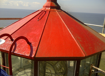 Note deterioration of coating on roof of lantern room.