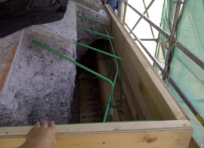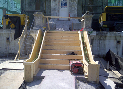 Extensive removals required at front steps of lighthouse. The bottom section has been formed for a pour.