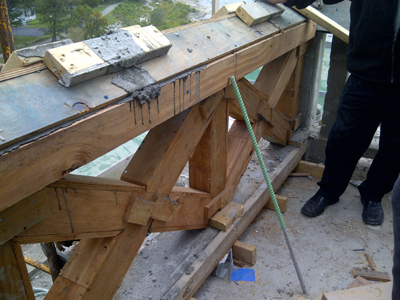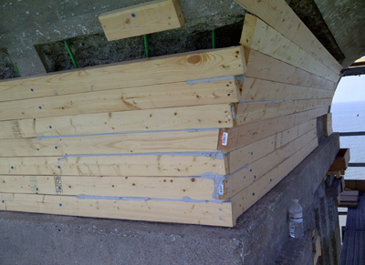 Note the forming required for the re-casting of the railing at the lantern room level.