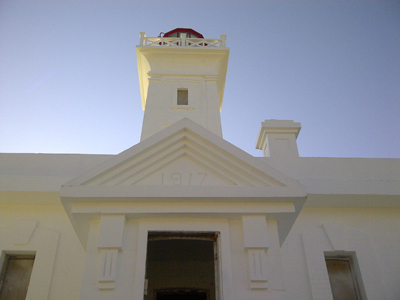 Note the seriously de-laminated key stone and detail above the window. This demonstrates the need to restrict access around the deck of the lighthouse for the last number of years.
