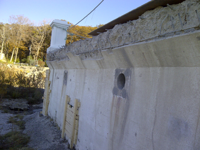 West doorway now open to the lake. Cement blocks have been removed to make way for new doors. (Doors were destroyed in a severe late autumn storm of 1985)